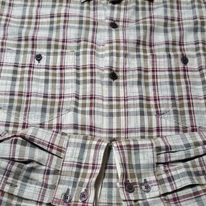 Horny Toad & Co Men's Long-sleeve Button Front Plaid Shirt Cream/Maroon XL