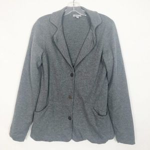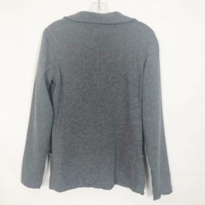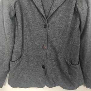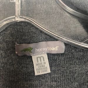 Button down long sleeve gray cardigan by Horny Toad. Collared. V-neck. Side pockets. Long line. Sleeves are fully lined. Heavy fabric. Super warm! In very good used condition. No visible flaws.