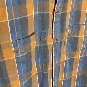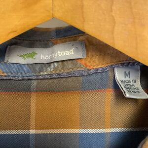 Horny Toad Light Brown Blue Plaid Twill Long Sleeve Button Front Shirt Size M
