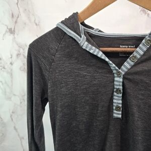 Horny Toad Shirt Womens XS Gray Hooded Henley Pullover Organic Cotton Long