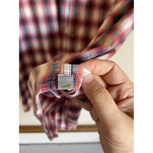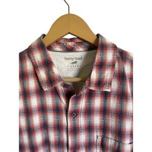 Horny Toad Size XL Red Black Plaid Short Sleeve Button Up Collared Shirt 100% Organic Cotton