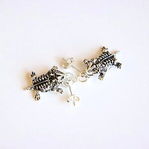 Horny Toad Sterling Silver Post Dangle Earrings Southwest Lizard Jewelry