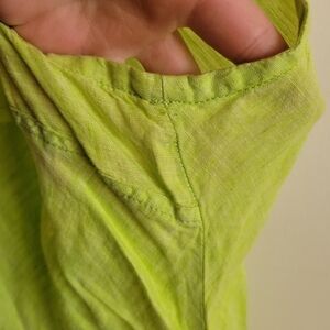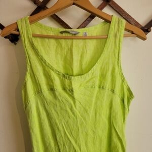 Horny Toad Tank Mini Dress Bright Green Yellow 100% Linen Pockets Small
