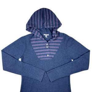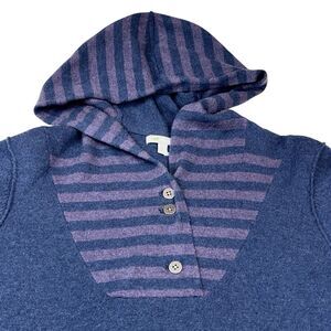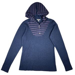 Horny Toad Wool Cashmere Hooded Sweater. Blue. Raw Side Seams. Sz Medium