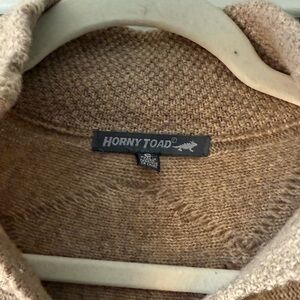 • Material: Wool blend (no fabric content tag but consistent with Horny Toad’s wool knits)