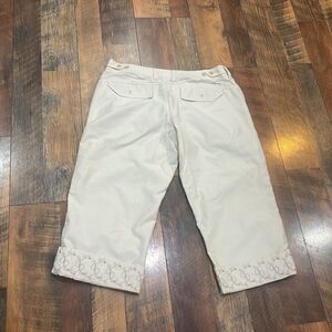 Waist is 15.5 to 16.5 inches across (adjustable buttons on the back waistband)