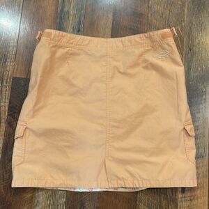 Velcro on the sides makes the skirt adjustable & The length is 17 inches long