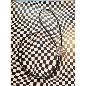 Horor style themed button style unique Bolotie style leather braided cord 36" ajustable necklace