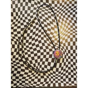 Horor style themed button style unique Bolotie style leather braided cord 36" ajustable necklace