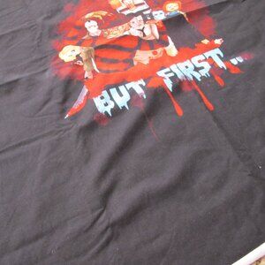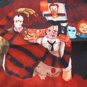 New - Horror Theme Fabric Panel - Cotton Spandex fabric panel for sewing/crafting purposes. Black background with horror selfie theme with all the favorites - Freddy Kreuger, Jason, Chuckie, Michael Myers, Leatherface, etc. Fabric panel measures approximately 29 x 34