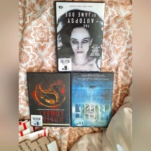Set of three DVDs including horror and action genres. Perfect for movie nights.