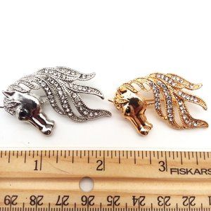 Horse Brooch Rhinestone Pin Stylish Sparkle Gold or Silver Tone Metal Equestrian