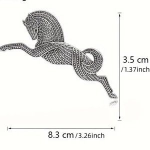 Large Art Deco Horse Brooch Pin Textured Trojan Gold or Silver Tone Metal Egyptian