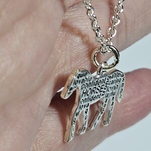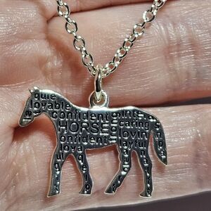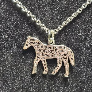 Horse Charm Pendant Silver Tone Pony Colt Equine Traits Confident Lovable 18"