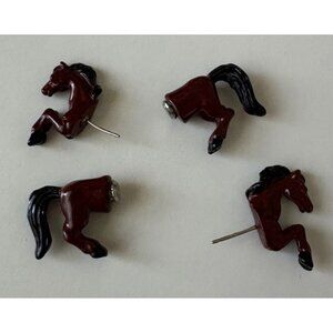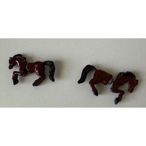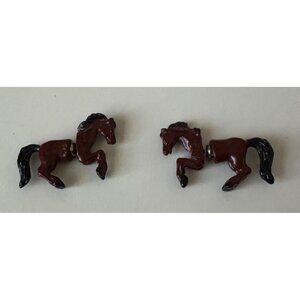 Horse Front Back Earrings Brown Black Enamel Silver Tone 1.5"