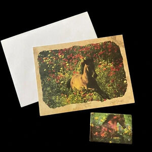 Horse Galloping Combo Pack VTG Leanin' Tree Greeting Card & Magnet Robert Vavra