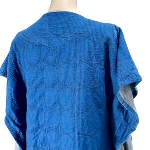 Horses Atelier Blue Geometric Quilted Blanket Kaftan Cover-Up Dress M/L *Flaw