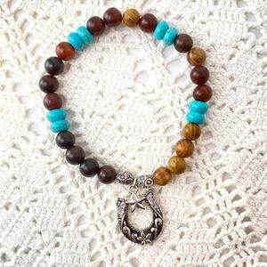 Horseshoe Charm Turquoise Wood Beaded Bracelet