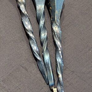 2” long stainless steel horseshoes. Handcrafted a twist in them.