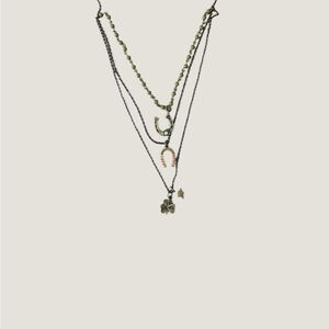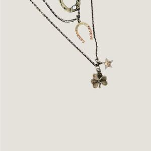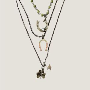 Horseshoe and Clover Multi-Charm Bronze Necklace