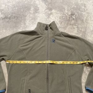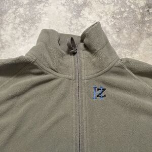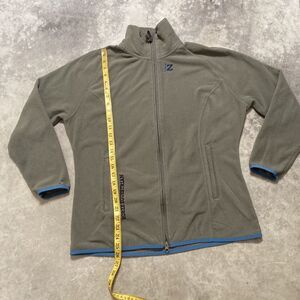 Horze Equestrian Fleece Jacket Womens Size 16 Full Zip Pockets Brown Blue Trim