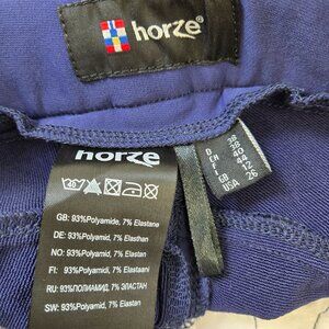 Really nice blue equestrian pants that have some mesh detail near the ankles and non-slip dots on the inside of the thighs. Adorned with silver hardware.