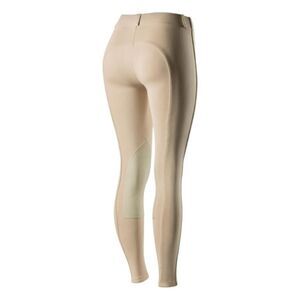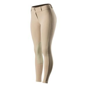 Horze by Equinavia Women's Ella Pull-On Knee Patch Riding Pants Breeches in Tan Cotton are practical mock breeches with great stretch and a comfortable waistband with belt loops. The knitted fabric is soft and slightly stretchy for a perfect fit. These breeches are perfect for daily use and frequent wear. They have 4-way stretch fabric for a full range of motion in the saddle. The breathable, moisture-wicking material is quality made for durability and long-lasting use.