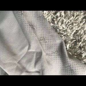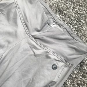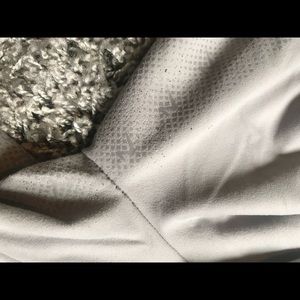 Really nice light grey full seat tights with silicon grip! Stretchy and comfortable. Tiny bit of pulling in crotch.