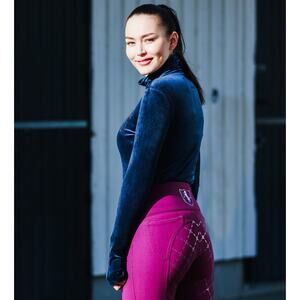Horze Womens Turtleneck Long Sleeved Lilia Velvet Shirt 10 Dark Navy Equestrian