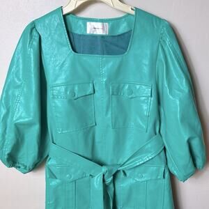 Hosbjerg Free People green Vegan Leather Mini belted Dress, Size L. Mark on brand tag to prevent retail return. Excellent, like new condition!
