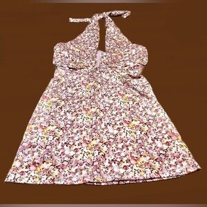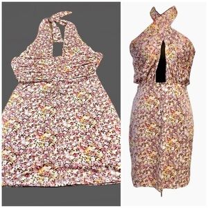 Hosbjerg ‘The Stella Dress,’ Low-Cut Floral Halter Mini Dress w/ Zipper, 2 (XS)