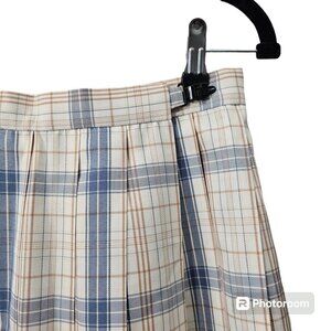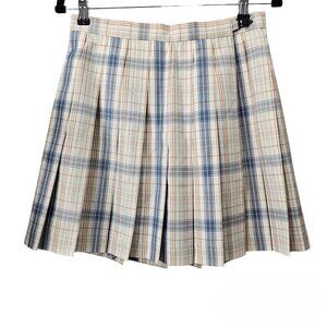 Hoshino Pleated Plaid Blue And Cream Tartan Mini Skirt Size XL