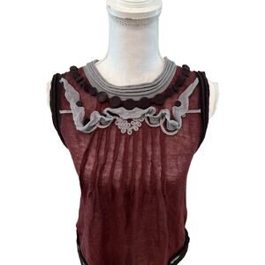 Hoss Avant Garde Edwardian Style Sleeveless Wool Top Merlot M