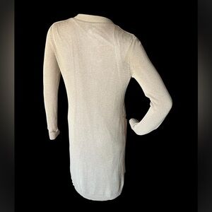 Hoss Intropia longline Sophie cardigan or sweater dress in excellent condition. Has belt loops on the sides to taper in the waist if you wish. Does not come with a belt however. The lining is 100% white comfy cotton with a ruffle bottom hemline. Very unique piece with a vintage roaring 20’s appeal. See flat lay measurements below and extra details as well before purchase