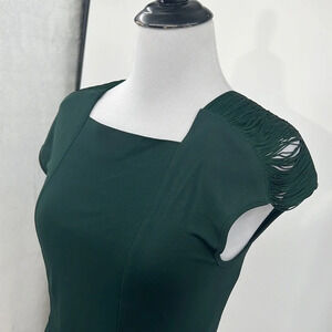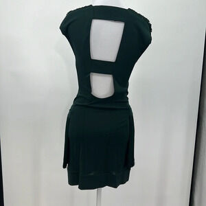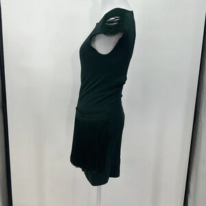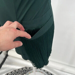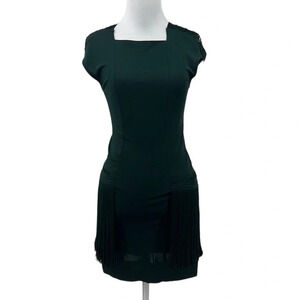Hoss Dress Womens 34 Mini Green Fringe Cap Sleeve. Square neck. Fringe details. Cutout details on back. 100% polyester. Pre-owned Condition- no flaws, no rips, stains, or holes.