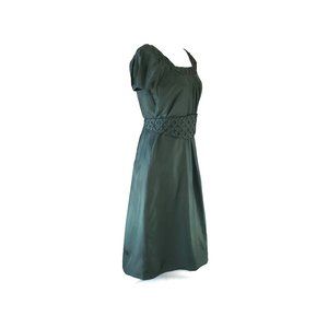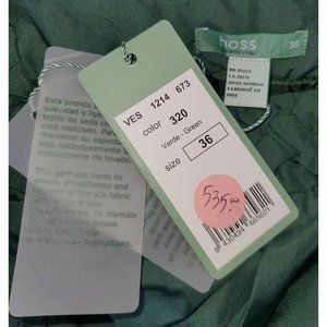 Hoss Intropia Hunter Green Silk Belted Midi Dress Cummerbund Tie Size 36 Medium