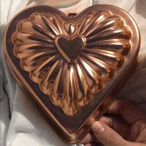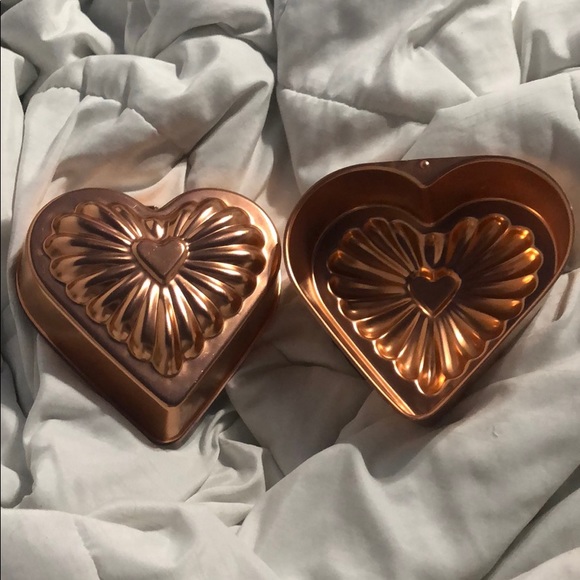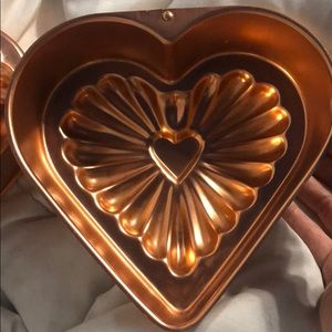2 Copper Hearts, one lost its hanger, 6 1/2 inches long, like new, never used, use as a mold or decoration