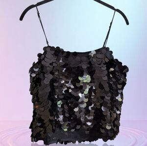 Dazzle in this chic black sequin camisole. Perfect for a night out.
