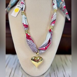 Host Pick!! Gemelli Scarf Necklace with Gold Heart Pendant – Statement Jewelry