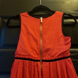 This adorable Kate Spade pleated chiffon dress is a available just in time for holiday pictures and events. It is a bright and beautiful red with black velvet trim and an exposed gold zipper (still in plastic covering). It has a chiffon and tulle flower applique detail. Scoop neck; sleeveless; and lined. It has a ruffle under skirt for extra volume. 100% Polyester; lining is 97%Polyester, 3% elastane. Size 12Y. Pristine condition, never worn. π Host Pick π