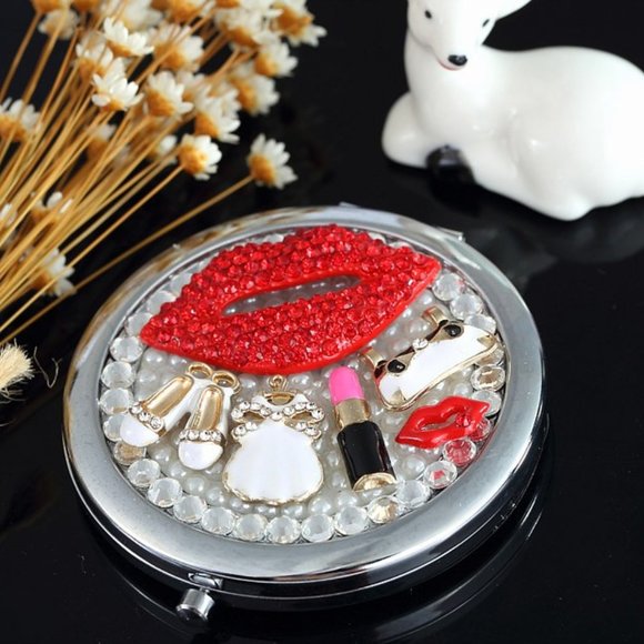 New Bling Rhinestone Sexy Lip Mini Pocket Compact Mirror - Makes a perfect cute gift!😍