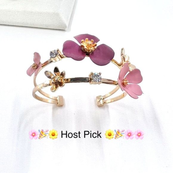 πΈπΌπ Host Pick - NWOT - Burgundy and Pink Flowers on Gold Tone Bracelet