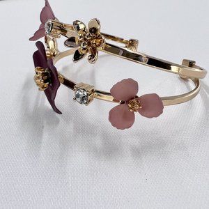 NWOT β Burgundy and Pink Flowers on Gold Tone Bracelet. Super cute and shiny, perfect for any occasion. Bracelet is 2.25β in diameter. Bracelet is new without tags and is from overstock or liquidated merchandise. Bracelet is in excellent condition.