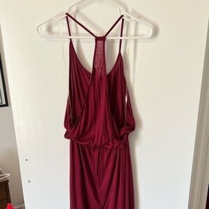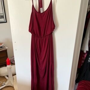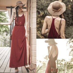 NWOT Gypsy Warrior maxi dress in deep red. Features a drapey racerback and two high slits in the skirt. Partially lined. Perfect for a sexy summer look and could even transition into fall paired with booties and a chunky sweater.