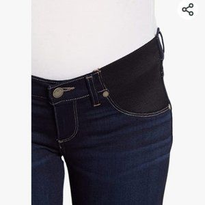 Slim-fitting jeans are cut with a figure-balancing bootcut silhouette and feature elastic side panels at the waistline for a chic, comfortable style that adjusts to your figure throughout your pregnancy.