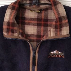 Renegade Club Men’s Vest Navy Blue Corduroy “Alaska” is embroidered on it. Beautiful And comfortable Plaid Lined, Zippered. Size XL, pre-owned no holes, rips or stains with 2 side pockets.