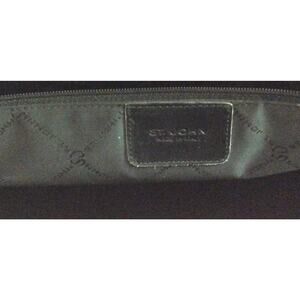 This St John Briefcase is in great condition. No stains or rips or damage. It opens at the top and has two large compartments for files, two inside zippered pockets and one large pocket that snaps closed with the St John emblem on the front. There are some faint scratches in the lock on front from the key - the key is missing so is not included. A very elegant briefcase, that carries all your business files with style. 17” wide outside, 15” wide inside (will fit 15” laptop), opens to 7” deep and 12” high