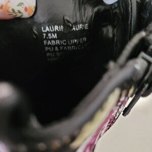 Laurie style, baroque with pink red roses on a black canvas. Moto combat boot style. Size 7.5 US