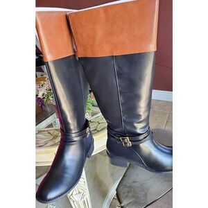 NWT. Beautiful black and brown Trixie boots by So. The heel height is 1.5". The size is 7.5.
