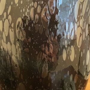 The shape is unusual and fantastic! I could go on and on about this piece! Slight scratches on bottom that don’t disrupt it- no chips!